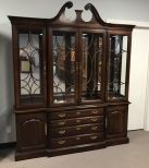 Thomasville Break Front China Cabinet, lighted, cherry, four center flatware drawers, double door storage, four glass doors with glass display shelves, good condition, 93"h., 77"w., 15"d. Thomasville Break Front China Cabinet, lighted, cherry, four center flatware drawers, double door storage, four glass doors with glass display shelves, good condition, 93"h., 77"w., 15"d.