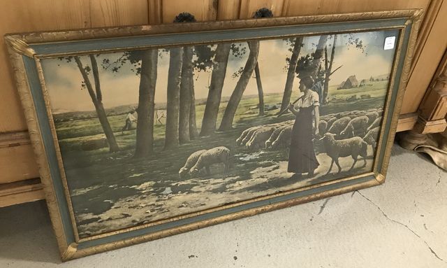 Vintage Print "The Shepherdess", early to mid 1900's, framed, 17"h., 31"w. Vintage Print "The Shepherdess", early to mid 1900's, framed, 17"h., 31"w.