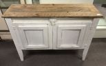 Primitive Style Painted Console Table, double door, no shelve, painted white base, natural top, 35"h., 48"w., 15"d. Primitive Style Painted Console Table, double door, no shelve, painted white base, natural top, 35"h., 48"w., 15"d.