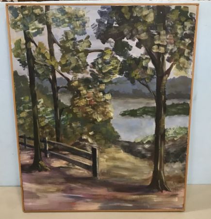 Oil Painting of Landscape with Trees and Fence by ARW, canvas, 34"h., 29"w. Oil Painting of Landscape with Trees and Fence by ARW, canvas, 34"h., 29"w.