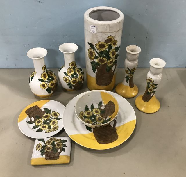Modern Chinese pottery, vases, plates, bowl, candle holder, sunflower decor. Modern Chinese pottery, vases, plates, bowl, candle holder, sunflower decor.