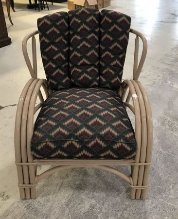 Painted Bamboo Style Arm Chair, upholstered cushions, good condition. Painted Bamboo Style Arm Chair, upholstered cushions, good condition.