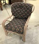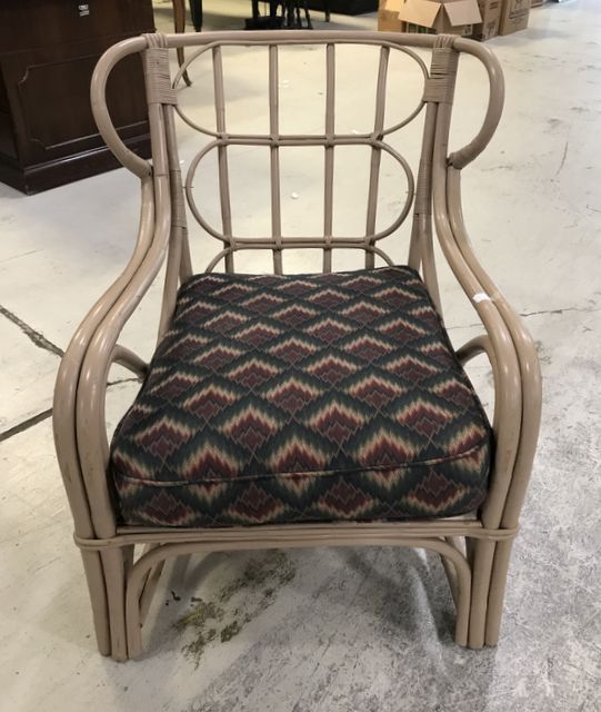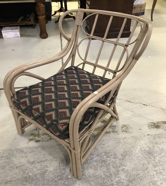 Painted Bamboo Style Arm Chair, upholstered cushions, good condition. Painted Bamboo Style Arm Chair, upholstered cushions, good condition.