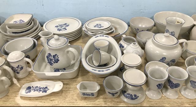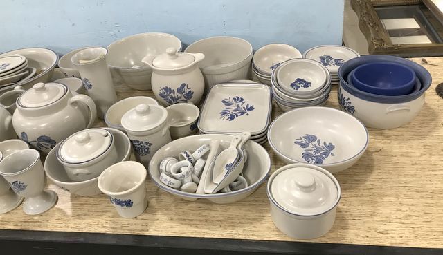 Huge Set of Pfaltzgraff Yorktowne Ceramic Serveware, Candle holders, vases, containers, dinner plates, serving bowls, goblets, cups, trays, salad bowls, napkins rings, salt & pepper, pitchers, butter dish, heart shaped dish and many more. Over 100 pieces. Huge Set of Pfaltzgraff Yorktowne Ceramic Serveware, Candle holders, vases, containers, dinner plates, serving bowls, goblets, cups, trays, salad bowls, napkins rings, salt & pepper, pitchers, butter dish, heart shaped dish and many more. Over 100 pieces.