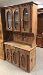 Primitive Style Wheat Carved Hutch, carved wheat emblems, two piece, weathered finish, three glass doors, three bottom doors, white porcelain knobs, 79"h., 45"w., 19"d. Primitive Style Wheat Carved Hutch, carved wheat emblems, two piece, weathered finish, three glass doors, three bottom doors, white porcelain knobs, 79"h., 45"w., 19"d.