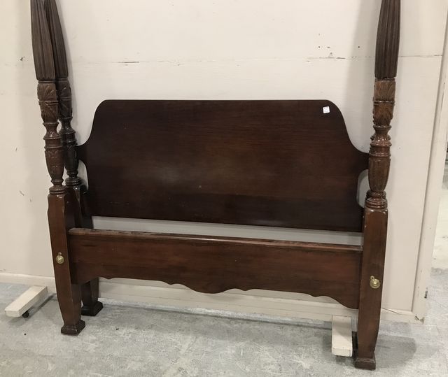 Modern Wheat Style Cherry Four Poster Bed, posters are removable, Queen size 60"w., has wood rails, has finish wear, one of the posts needs repair. Modern Wheat Style Cherry Four Poster Bed, posters are removable, Queen size 60"w., has wood rails, has finish wear, one of the posts needs repair.