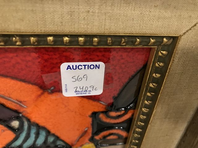 Framed painted tile of Knight, wood frame, 16"w. Framed painted tile of Knight, wood frame, 16"w.