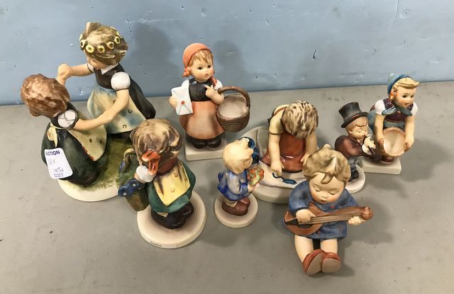Group of West Germany Goebel Figurines, porcelain, 8 total. Group of West Germany Goebel Figurines, porcelain, 8 total.