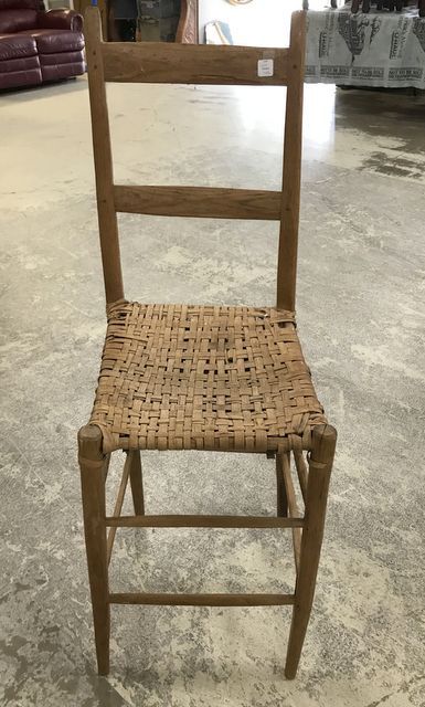 Early Amish made thin ladder back chair, woven seat, chair needs work, has loose, 42"h. Early Amish made thin ladder back chair, woven seat, chair needs work, has loose, 42"h.