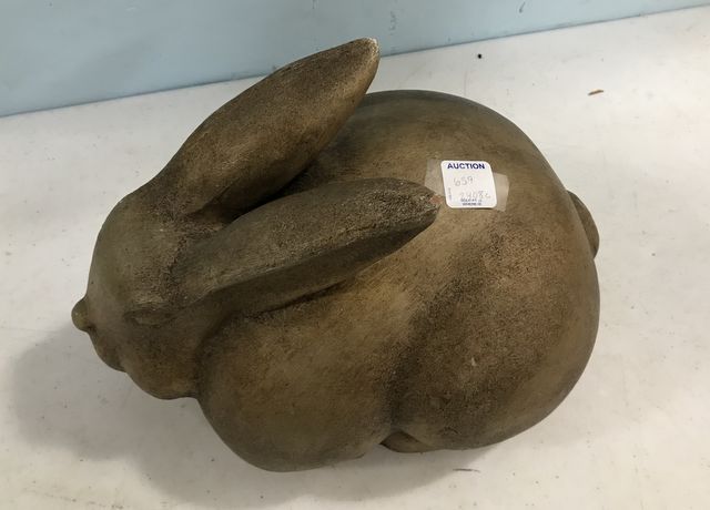Decorative Pottery Rabbit Statue, bronzed color pottery, 8"h., 12"w. Decorative Pottery Rabbit Statue, bronzed color pottery, 8"h., 12"w.
