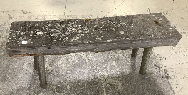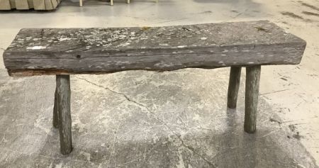 Primitive hand made pig bench, weathered aged and wear, sturdy, 18"h., 42"w. Primitive hand made pig bench, weathered aged and wear, sturdy, 18"h., 42"w.