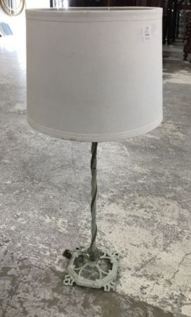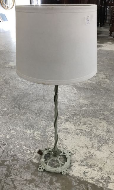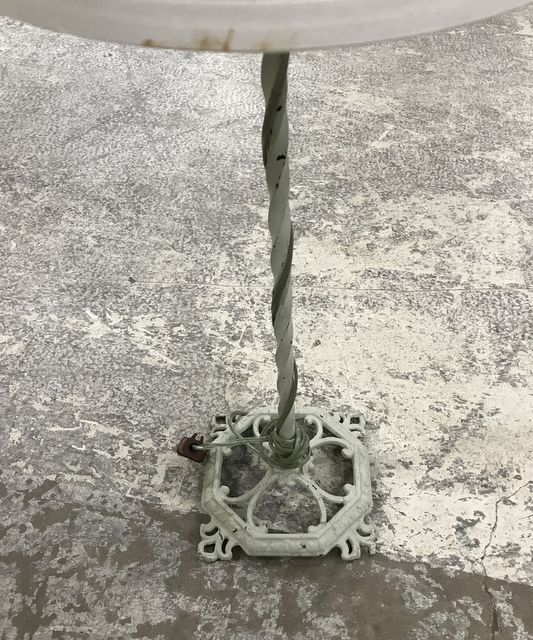 Vintage painted swirl design lamp, footed, metal frame, with shade, 30"h. Vintage painted swirl design lamp, footed, metal frame, with shade, 30"h.