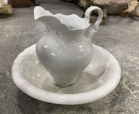 687 TST White Porcelain Wash Pitcher and Bowl