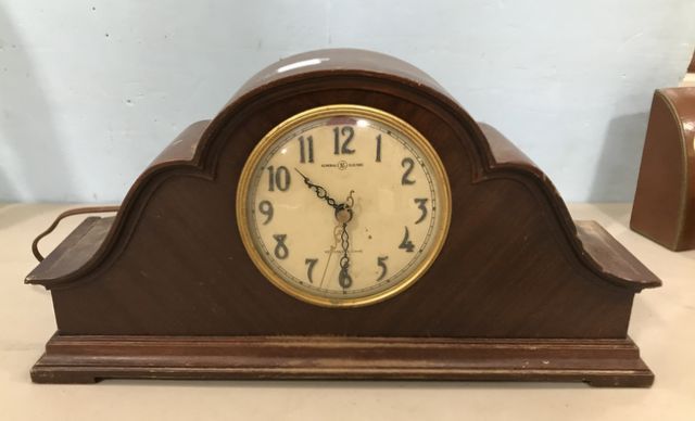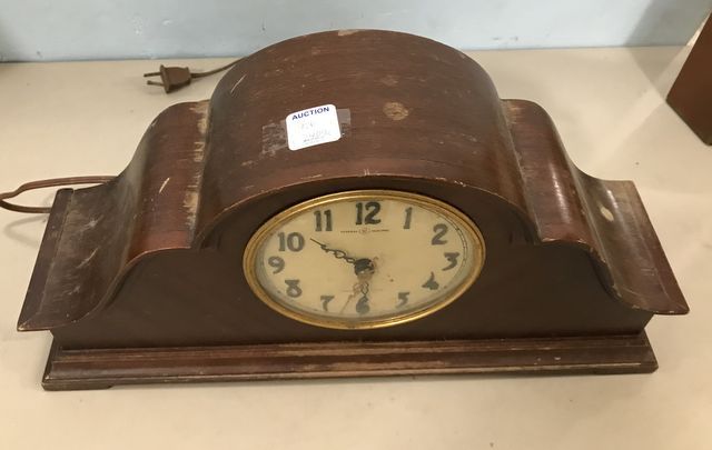 General Electric Mantle Clock, electric, Westminster Chime, finish has wear, 8"h., 16"w. General Electric Mantle Clock, electric, Westminster Chime, finish has wear, 8"h., 16"w.
