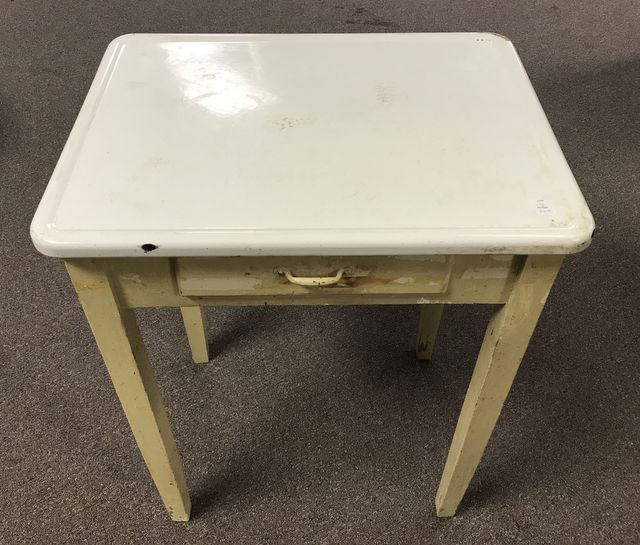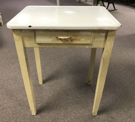 Porcelain Top Side Table, single drawer, painted base, 31"h., 24"w., 18"d. Porcelain Top Side Table, single drawer, painted base, 31"h., 24"w., 18"d.