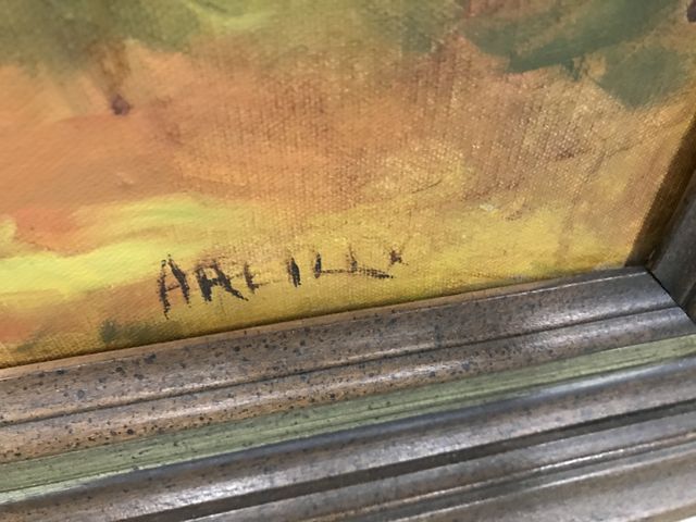 Signed Woods painting on canvas, wood framed, signed lower right, 27"h., 31"w. Signed Woods painting on canvas, wood framed, signed lower right, 27"h., 31"w.