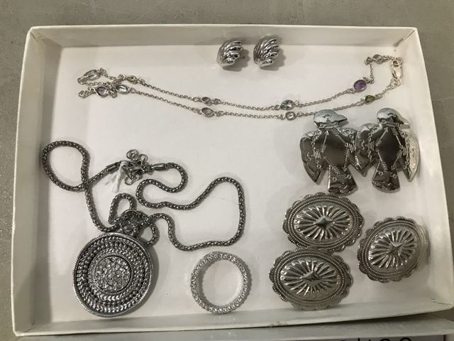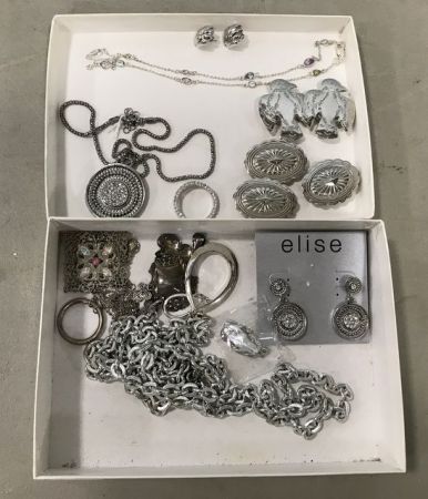 Group of Silver Tone Jewelry Pieces, earrings, necklaces, chains, pendants. Group of Silver Tone Jewelry Pieces, earrings, necklaces, chains, pendants.