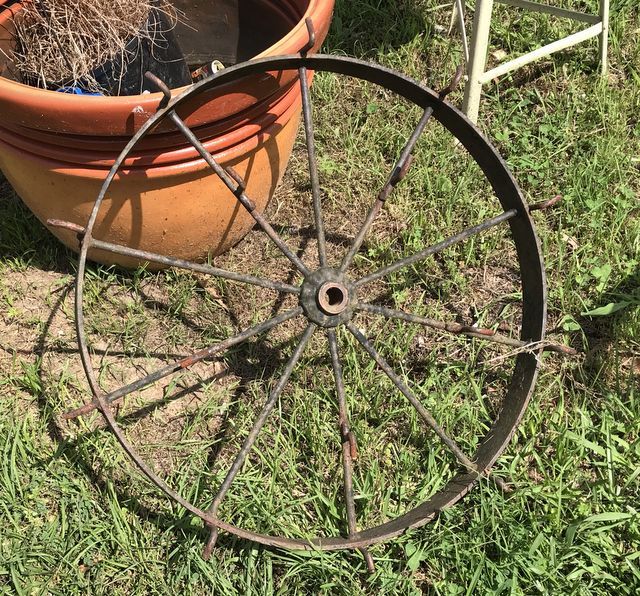 748 Vintage Iron Wagon Wheel with Hanging Hooks