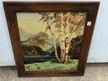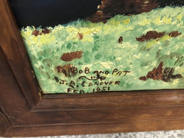 Landscape Painting Mountains Scene Artist Signed, To Bob and Pat, J. A. Conover, 1951, 25"h., 23"w. Landscape Painting Mountains Scene Artist Signed, To Bob and Pat, J. A. Conover, 1951, 25"h., 23"w.