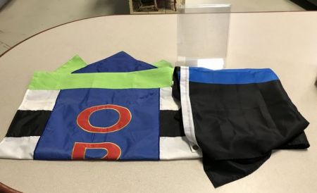 Double Side "OPEN" Banner, Police Honor Flag, and three acrylic display stands. Double Side "OPEN" Banner, Police Honor Flag, and three acrylic display stands.