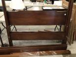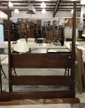 Chippendale Style Four Poster Canopy Bed, has canopy rods, and rails. Finish has scuffs and scratches primarily on foot board, missing rail bolts. full size, 55". Chippendale Style Four Poster Canopy Bed, has canopy rods, and rails. Finish has scuffs and scratches primarily on foot board, missing rail bolts. full size, 55".