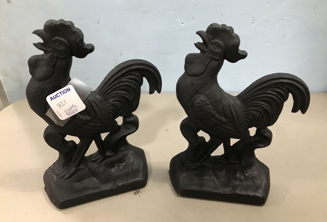 Black Painted Metal Rooster Door Stops, 7"h. Black Painted Metal Rooster Door Stops, 7"h.
