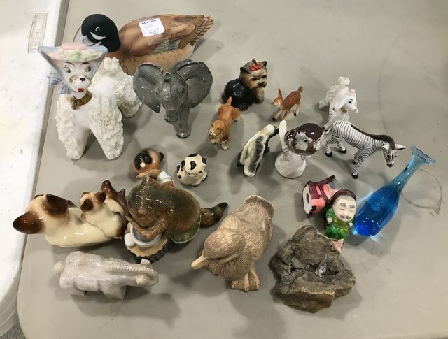 Group of Small Animal Ceramic and Porcelain Figurines, dogs, elephant, owl, zebra, ducks, horse, cats. Group of Small Animal Ceramic and Porcelain Figurines, dogs, elephant, owl, zebra, ducks, horse, cats.