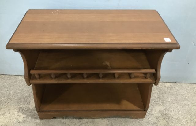 Vintage two shelf bookcase, Formica top, one shelf, has finish wear, 25"h., 30"w., 13"d. Vintage two shelf bookcase, Formica top, one shelf, has finish wear, 25"h., 30"w., 13"d.