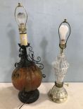 Pressed Glass Lamp and Metal Decor Glass Table Lamp 31"h. Pressed Glass Lamp and Metal Decor Glass Table Lamp 31"h.