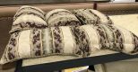 Five matching throw pillows, assorted sizes, clean. Five matching throw pillows, assorted sizes, clean.