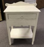 Vintage painted Washstand, single drawer, two tier, back crest, 32"h., 22"w., 17"d. Vintage painted Washstand, single drawer, two tier, back crest, 32"h., 22"w., 17"d.