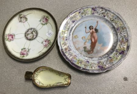 Austria porcelain hand painted plate, Bavaria hand painted rose plate, handled cig dish with cross arrows. Austria porcelain hand painted plate, Bavaria hand painted rose plate, handled cig dish with cross arrows.