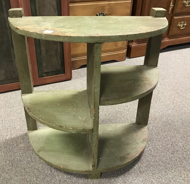 Primitive Style Half Moon Wall Shelf, painted, age distressed, 24"h., 24"w. Primitive Style Half Moon Wall Shelf, painted, age distressed, 24"h., 24"w.