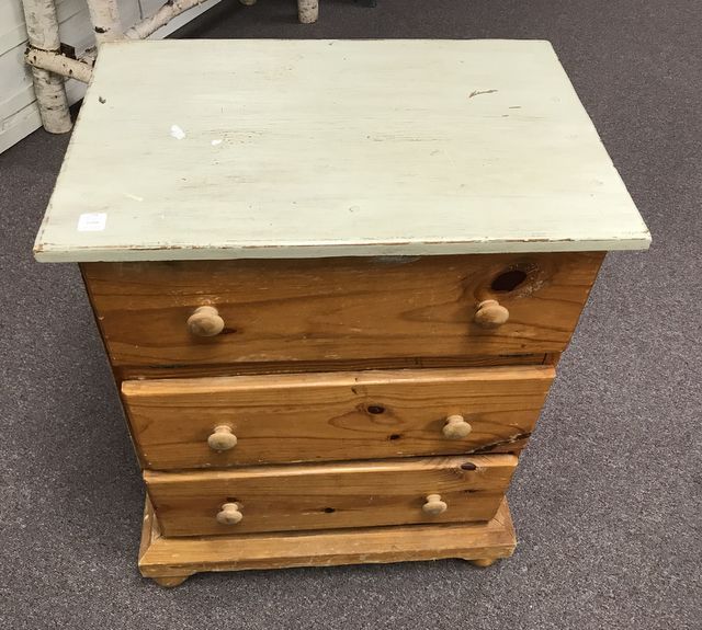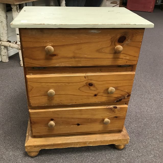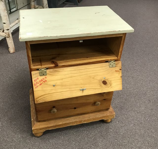 Hand made pine commode stand, two drawers, drop down top drawer, footed, white painted top, 33"h., 24"w., 16"d. Hand made pine commode stand, two drawers, drop down top drawer, footed, white painted top, 33"h., 24"w., 16"d.