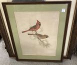 Eastern Cardinal lito, signed by artist, matted, framed, 25"h., 20"w. Eastern Cardinal lito, signed by artist, matted, framed, 25"h., 20"w.