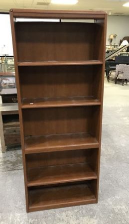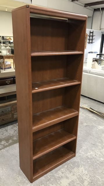 Pressed board bookcase, four shelves, needs structure work, 72"h., 29""w., 11"d. Pressed board bookcase, four shelves, needs structure work, 72"h., 29""w., 11"d.