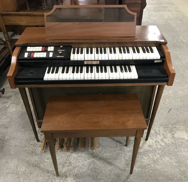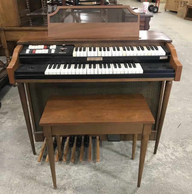 Baldwin Electric Organ, needs cleaning, does work, one leg needs tightening, comes with piano bench. Baldwin Electric Organ, needs cleaning, does work, one leg needs tightening, comes with piano bench.