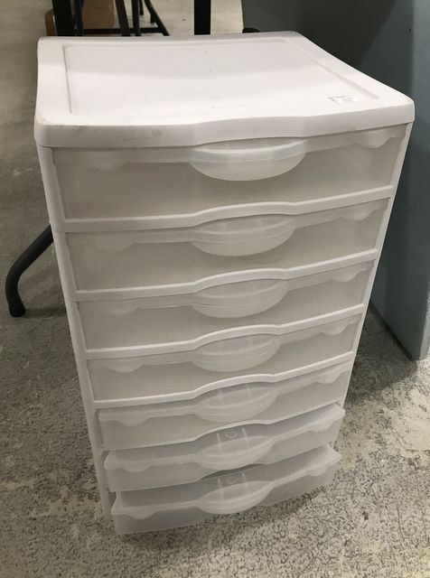Sterilite Plastic Container, 7 storage drawers, 24"h., 14"w. Sterilite Plastic Container, 7 storage drawers, 24"h., 14"w.