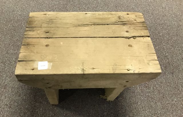 Primitive Hand Made Small Stool, painted, 11"h., 16"w. Primitive Hand Made Small Stool, painted, 11"h., 16"w.
