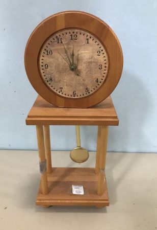 Wood mantle clock, battery powered, 16"h. Wood mantle clock, battery powered, 16"h.
