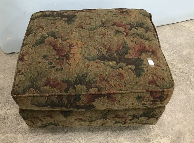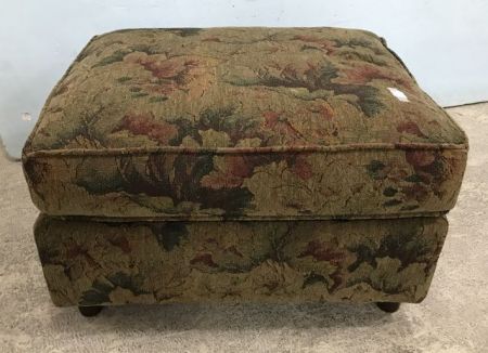 Floral Upholstered Ottoman, footed, needs some cleaning, 16"h., 30"w. Floral Upholstered Ottoman, footed, needs some cleaning, 16"h., 30"w.