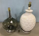 1073 Large White Ceramic Lamp and Green Glass Lamp