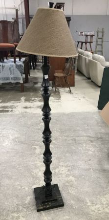 Painted black wood floor lamp with shade, 64"h. Painted black wood floor lamp with shade, 64"h.
