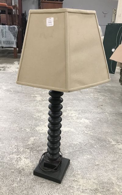 Jenny Lind style table lamp, painted, with shade, 30"h. Jenny Lind style table lamp, painted, with shade, 30"h.