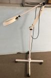 White Rolling Magnifying Glass, adjustable, on wheels, works. White Rolling Magnifying Glass, adjustable, on wheels, works.