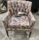 Floral Upholstered Club Chair, button tufted, has arm covers, good condition, 31"h. Floral Upholstered Club Chair, button tufted, has arm covers, good condition, 31"h.