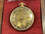 Key Wind 18 Pocket Watch, in case, no gold mark, appears to be gold, needs work, monogrammed on back, marked 18, 26110, 4. Key Wind 18 Pocket Watch, in case, no gold mark, appears to be gold, needs work, monogrammed on back, marked 18, 26110, 4.
