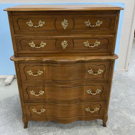 Kent Coffey The Bordeaux Country French Cherry Chest on Chest, five drawers, light wear, 52"h., 38"w., 19"d. Kent Coffey The Bordeaux Country French Cherry Chest on Chest, five drawers, light wear, 52"h., 38"w., 19"d.