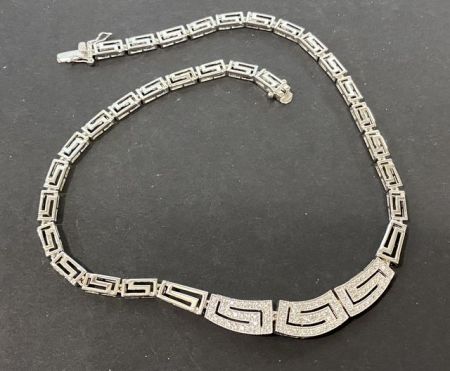 Marked .925 Sterling Choker Necklace, with clear stones. Marked .925 Sterling Choker Necklace, with clear stones.