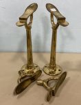 Pair of Brass Shoe Shine Stands and Two Broken Shoe Stands, 15"h. Pair of Brass Shoe Shine Stands and Two Broken Shoe Stands, 15"h.